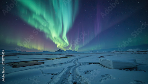 Dancing Northern Lights Over a Frozen Arctic Landscape