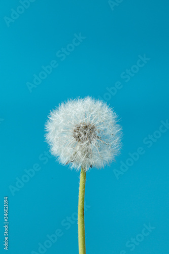 Dandelion on a blue background. Summer dandelion in the blue sky.