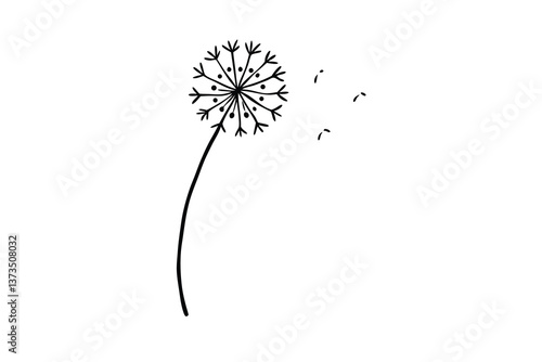 Dandelion Seedhead, Black and White, Line Art, Floral, Nature, Botanical, Design, Illustration, Seed