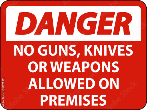 Danger Gun Rules Sign No Guns, Knives Or Weapons Allowed On Premises