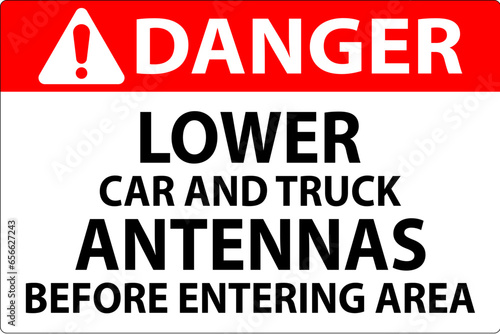 Danger Sign Lower Car And Truck Antennas Before Entering Area
