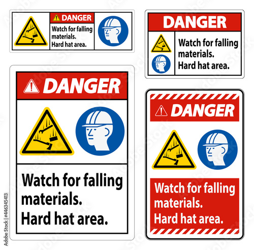 Danger Sign Watch For Falling Materials, Hard Hat Area