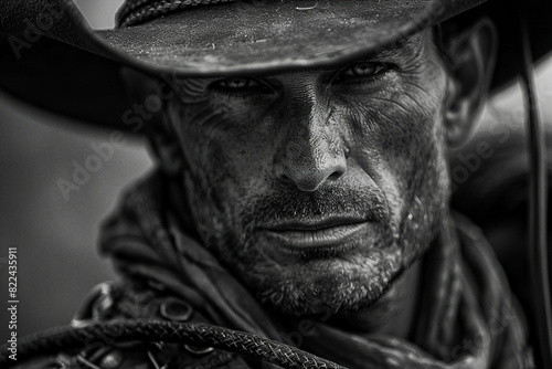 Dangerous cowboy western movie personage with gun and horse made with Generative AI modern technology