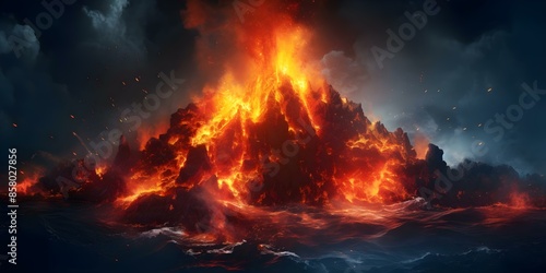 Dangerous Underwater Volcano Eruption Fiery Magma and Explosive Crater Formation. Concept Underwater Volcano, Eruption, Fiery Magma, Crater Formation, Dangerous Situation