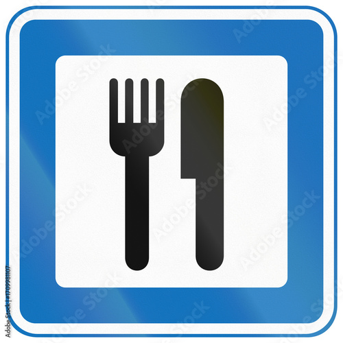 Danish service road sign for a restaurant