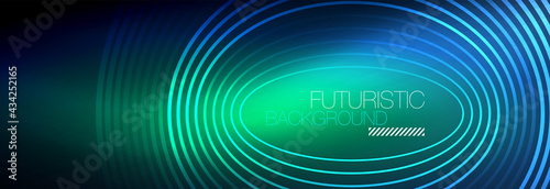Dark abstract background with glowing neon circles. Trendy layout template for business or technology presentation, internet poster or web brochure cover, wallpaper