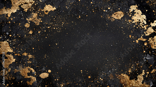 Dark abstract background with gold flakes - grunge texture. Blazetide. Illustration