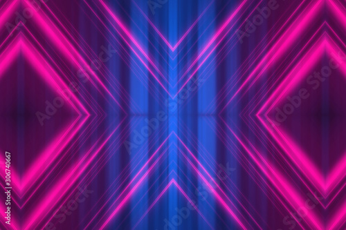 Dark abstract futuristic background. Neon lines glow. Neon lines, shapes. Multi-colored glow, blurry lights, bokeh. Empty stage background