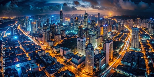 Dark Aerial Cityscape at Night: Drone Photography, Abstract Shadows, Urban Textures