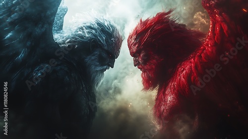 Dark Angel Battle Heavenly Warrior Clash Symbolic Cosmic Epic Visuals Illustration