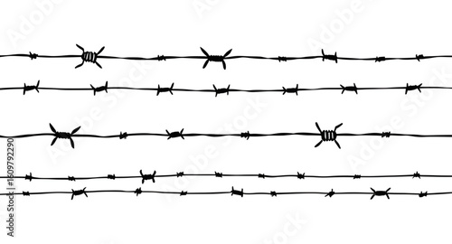 Dark barbed cord, Perimeter fence silhouette, Isolated metal wire, Boundary protection wire, Wire outline drawing, Dark fence vector, Caution wire silhouette, Silhouette barbed edge, Deterrent wire ve