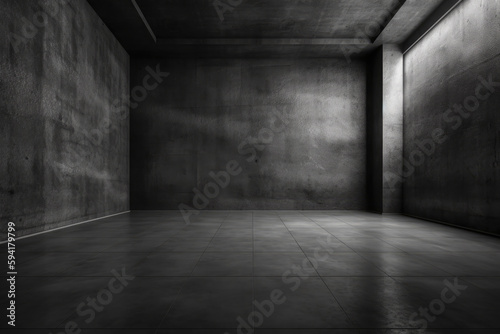 Dark black and gray abstract cement wall and interior textured studio room for product display. Wall background
