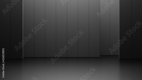 Dark black empty architecture interior space room studio background backdrop wall display products minimalistic. 3d rendering.