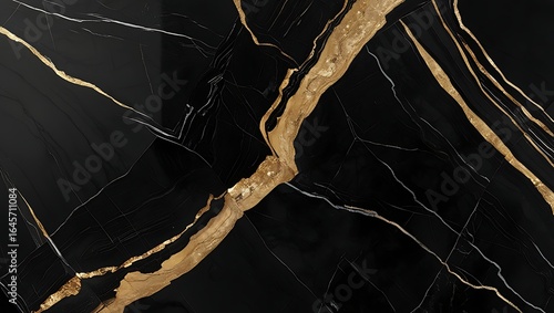 Dark black marble with natural golden veins, high contrast, luxurious and dramatic style.