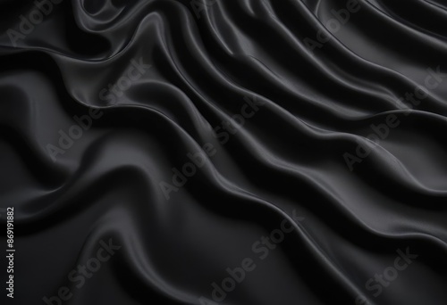 Dark black silk fabric background, view from above. Smooth elegant black silk or satin luxury cloth texture can use as abstract background with copy space, close-up