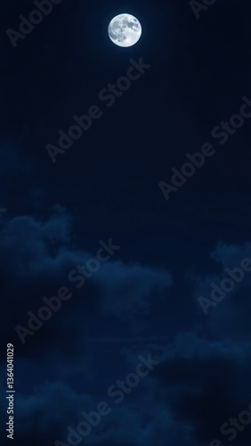 Dark blue abstract background. Night sky with clouds and moonlight. Navy blue sky background with copy space for design. Web banner.