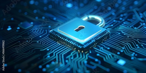 Dark blue backdrop enhances network security protocols to safeguard data and prevent breaches. Concept Information Security, Network Security, Data Protection, Cybersecurity Measures