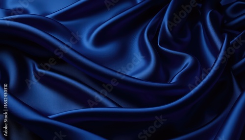 Dark blue elegant fabric folds creates rich texture with highlights and shadows perfect for a luxurious background