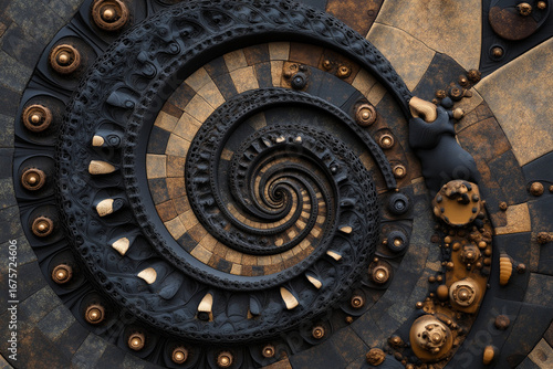 Dark blue fractal waves form a captivating spiral design with intricate patterns and textures
