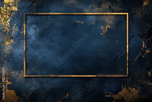 Dark Blue Grunge Background with Golden Frame and Empty Space for Text. AI generated illustration