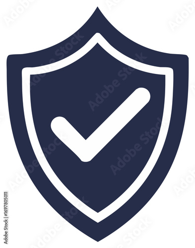 Dark Blue Shield Icon with White Check Mark Symbol of Security and Protection