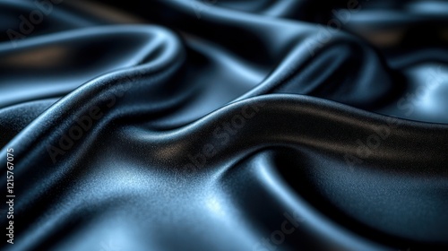 Dark blue silk fabric drapes, studio shot, smooth texture, elegant background, fashion design