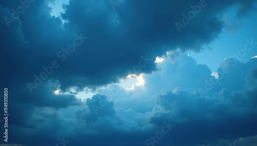 Dark blue sky with low altitude nimbostratus clouds, gray, blue
