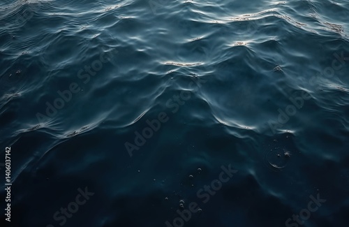 Dark blue water surface with gentle ripples background. Top view of deep sea or lake with light reflection and waves. Minimalistic abstract nature photo of the ocean or river texture.