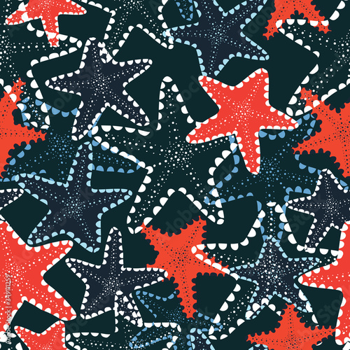 Dark blue with underwater red star fish seamless pattern background design.