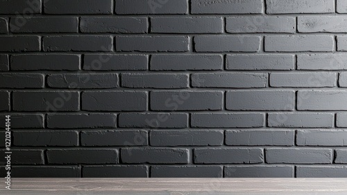 Dark brick wall background with wooden floor, perfect for modern interior design and architectural projects.