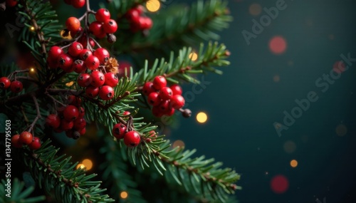 Dark brown Christmas tree branches with berries, rustic, christmas