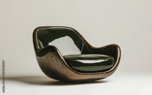 Dark brown rocking chair with a unique, sculpted design, set against a neutral off-white background. The chair's curves and dark upholstery create a sophisticated and modern aesthetic