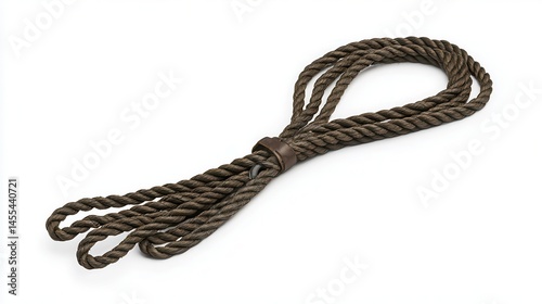 Dark Brown Twisted Rope with Leather Clasp on White Background
