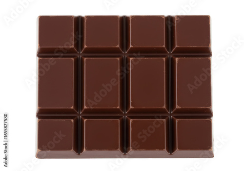 Dark chocolate bar with twelve rectangular pieces isolated on transparent background