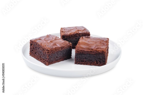 Dark chocolate brownie cakes in a plate on a white isolated background