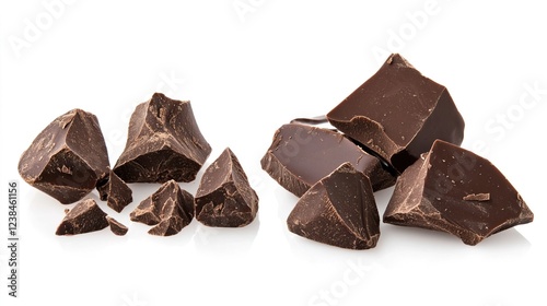 Dark Chocolate Chunks and Pieces on White Background for Recipes