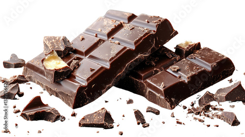 Dark Chocolate Indulgence: Two chocolate bars with a scattering of small pieces. A visual feast that evokes the essence of indulgence