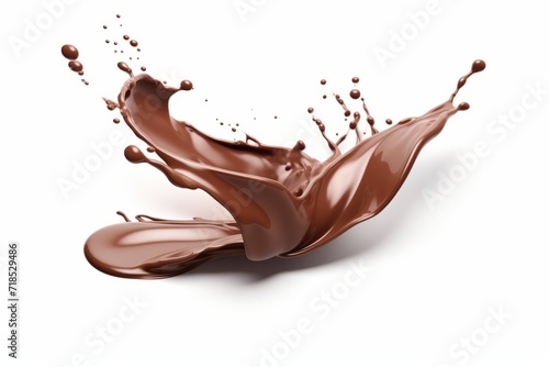 Dark Chocolate Splash with Shimmering Highlights, on an Isolated White Surface, Generative AI