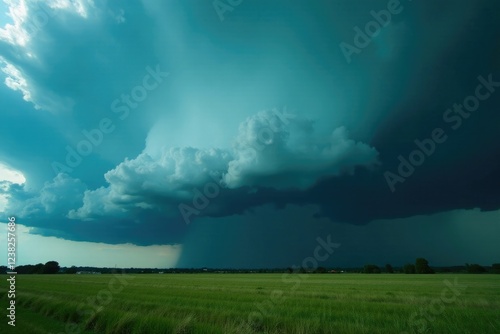 Dark cloud looming over a landscape during summer thunderstorms, landscape, rainy