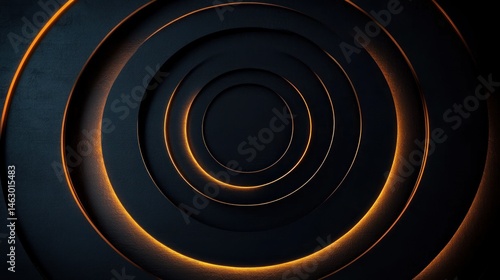 Dark concentric circular layers with glowing orange edges creating a futuristic and abstract tunnel effect