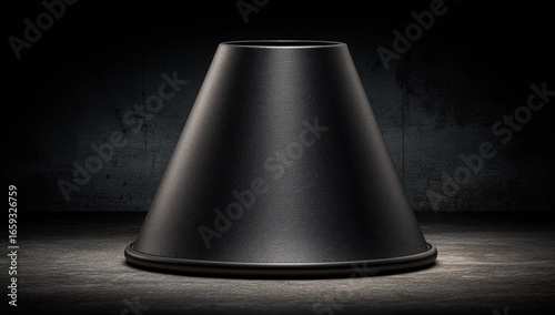 Dark conical lampshade on textured concrete
