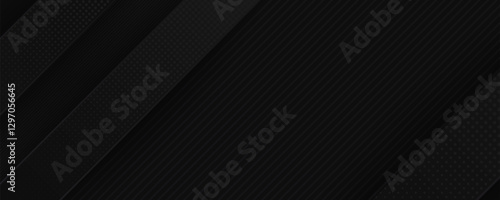 Dark deep black dynamic abstract vector background with diagonal lines. Modern creative halftone premium gradient. 3d cover of business presentation banner for sale event night party.