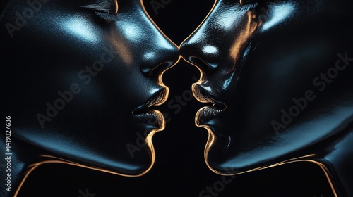 Dark Elegance: A Digital Portrait of Two Faces in Close Proximity, Reflecting Intimacy and Connection