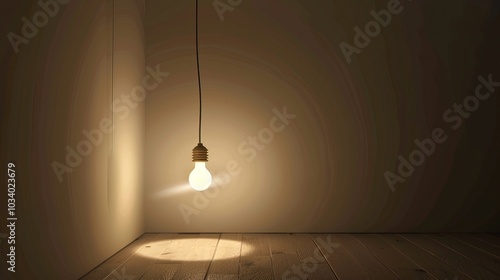 Dark empty room with single flickering light bulb casting long shadows, emphasizing absence of power and eerie atmosphere, minimalist setting with focus on light bulb's glow.