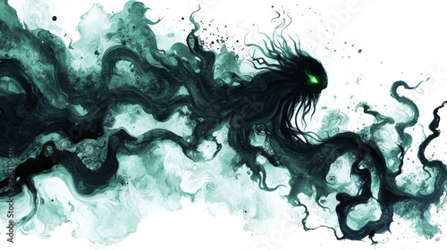 Dark ethereal eldritch magic with shadowy tendrils and eerie green glowing mist, isolated on white