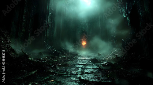 Dark Fantasy Realm: Exploring Ancient Ruins, Mystical Fog, and Ember Glow