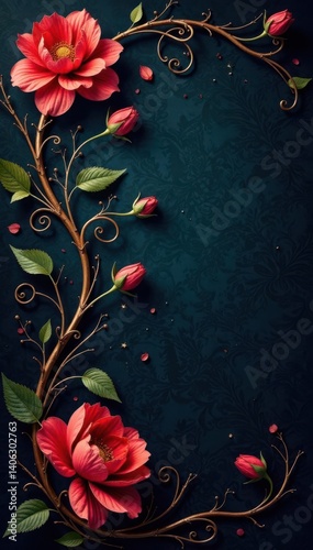 Dark floral damask wallpaper with twisted vines and black flowers, black onyx design , floral patterns