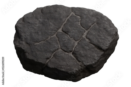 Dark fractured stone hovering against transparent backdrop, ideal for digital compositing and graphic design projects