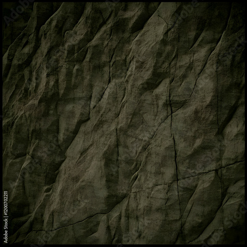 Dark Gray Rock Face Texture Shows Cracked and Weathered Surface in Nature Close-Up Detail.