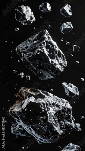 Dark Gray Rocks Floating in Black Space